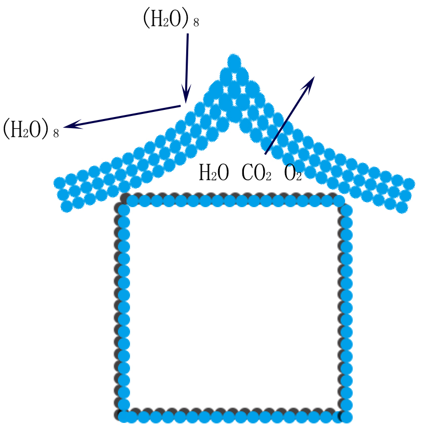 液態(tài)的水由于存在較強(qiáng)的分子問氫鍵作用,因此在常溫下其締臺分子的分子式約為(H2O)8,而氣態(tài)的水分子則較小,其分子式為H20。透氣膜能透過較小體積的水蒸氣分子H20 ,卻不足以通過體積較大的液態(tài)締合水分子(H2O)8,故其具有透氣而不漏水的特點從而被廣泛應(yīng)用于各行各業(yè)。